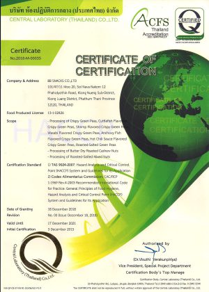 BB Snacks is leading Thai manufacturer of crispy coated green peas, crispycoated peanuts, roasted nuts and other snacks. Established in 1982 with a factory in Phatum Thani, just outside Bankok, the company currently employs in its fully-automated modern plant.